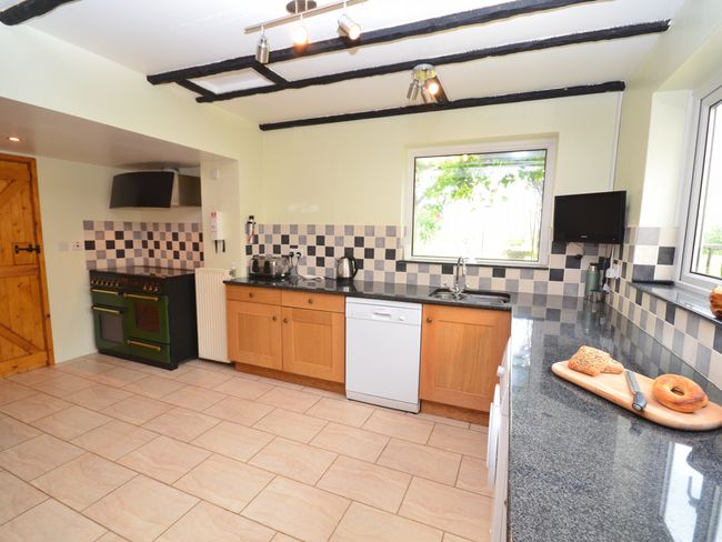 Lantern Cross is located by the A3124 Winkleigh-Great Torrington road, about three quarters of a mile North of the village of Beaford with its pub and petrol station. The gated driveway and parking area has space for four cars, with further gates leading to the enclosed garden of almost two acres. Now fully double glazed, the house was comprehensively renovated and re-modelled in 2010. With two front entrances, the ground floor has a large main lounge with Smart TV and windows both to front and back, a large central dining room with exposed beams, dining table to seat 8, wood-burning stove and mini hi-fi system and a cosy "snug" with two two seater settees, Smart TV and connected audio system and a second wood-burning stove. There is a table football table and a range of books and games. The large kitchen has a washing machine, tumble drier, dishwasher, large fridge-freezer, microwave, toaster, food processor, coffee mill and cafetieres, comprehensive range of cooking utensils and plenty of storage. The 110cm Rangemaster double electric oven cooker has four gas hobs, a griddle plate, plate warmer and grill. There are views over the garden and patio, with constant interest from the bird feeders close to the garden window. There are two WCs downstairs, and two back doors, one opening directly onto the lower patio and the other via a convenient glazed enclosed lean-to with dry storage for boots, play equipment and dog bowls.